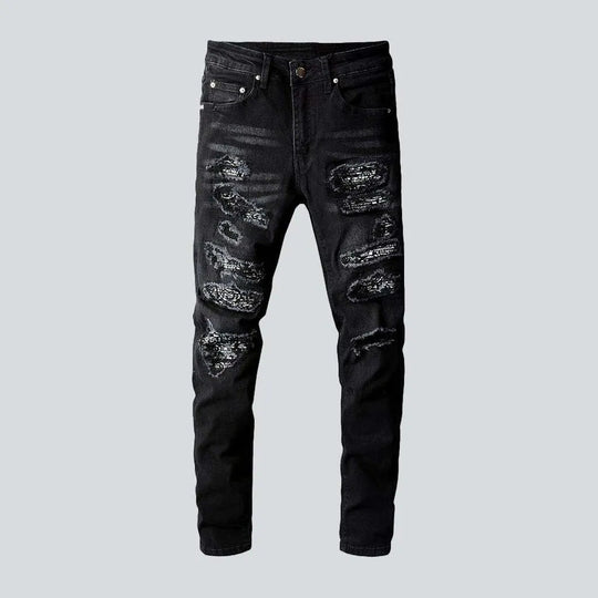 Men's black-patches jeans