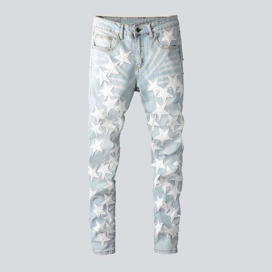 White stars embroidery men's jeans