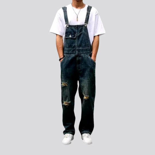 Loose fit men's denim overall