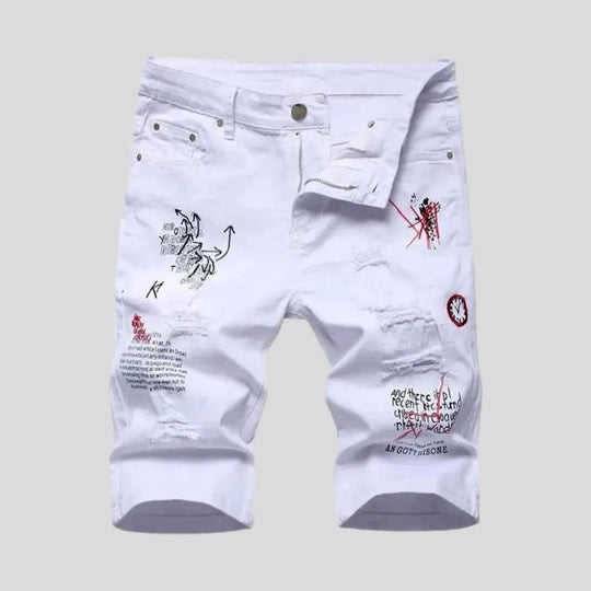 White men's distressed denim shorts