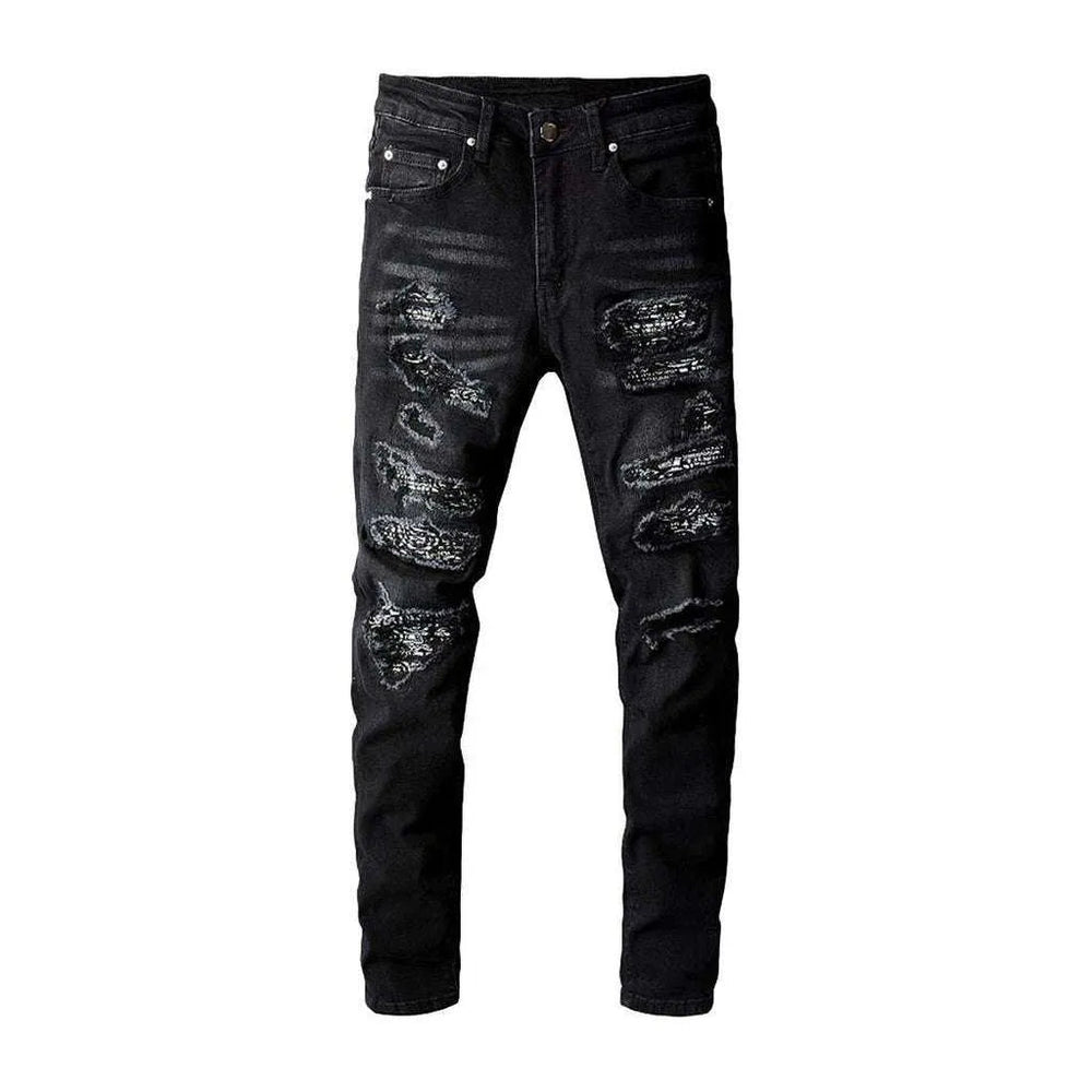 Introducing the 2023 Autumn Collection's black painted patch men's jeans a urbane style that is sure to turn heads!