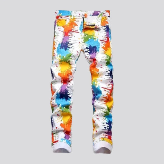 Painted multi-color-print jeans
