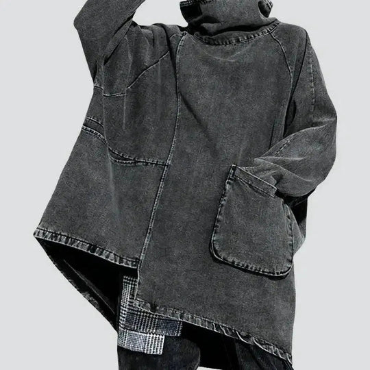 Pull-on grey women's jeans coat