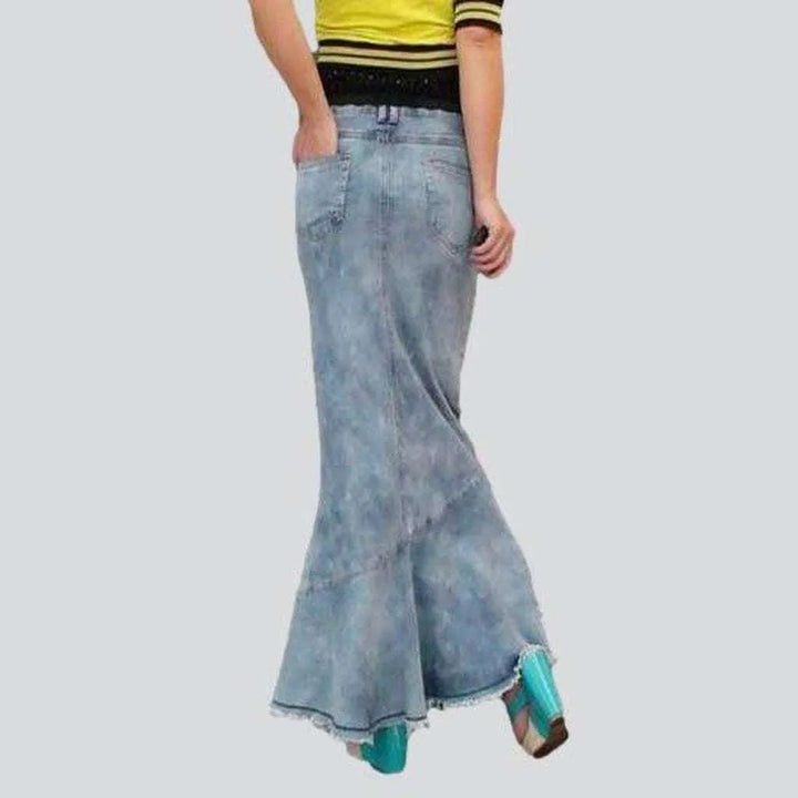 Introducing our frills mermaid women's denim skirt from 2023 Summer Collection a stunning combination of streetwear style, whitened details, and Y2K-inspired fishtail silhouette!