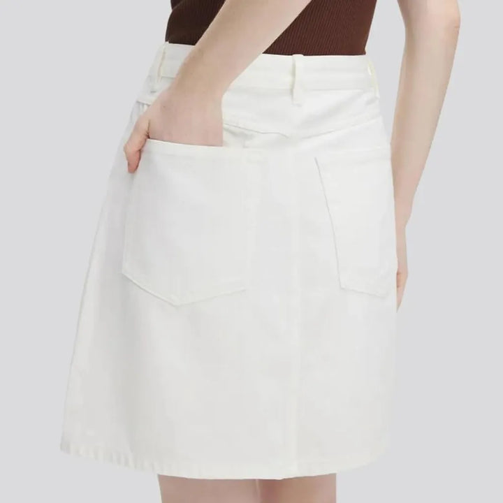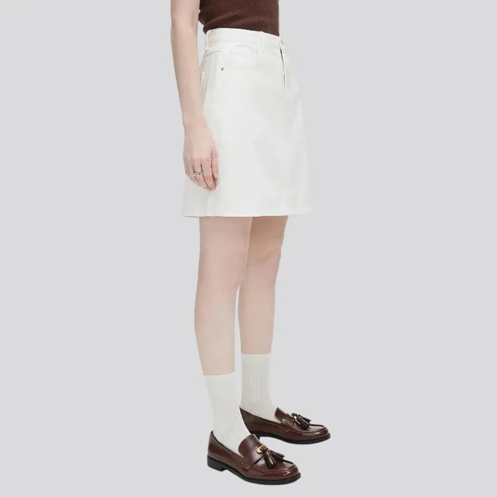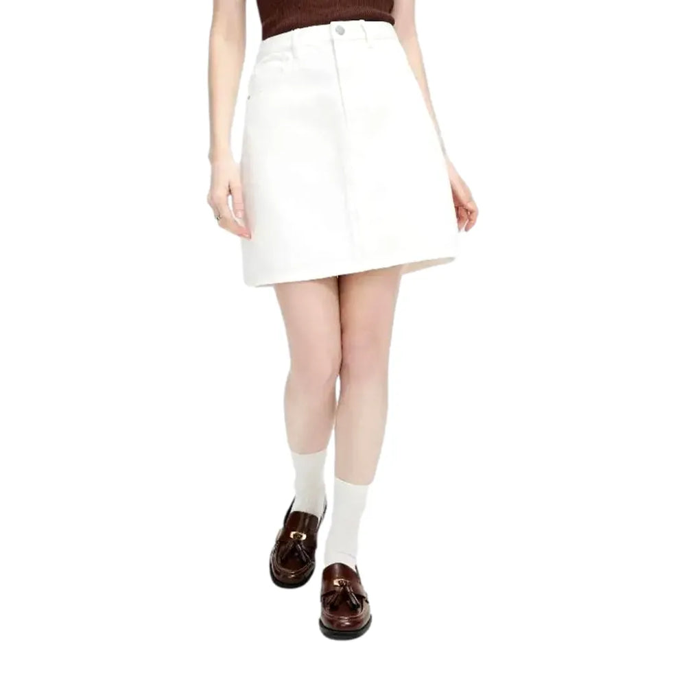 High Waisted Denim Skirt - White