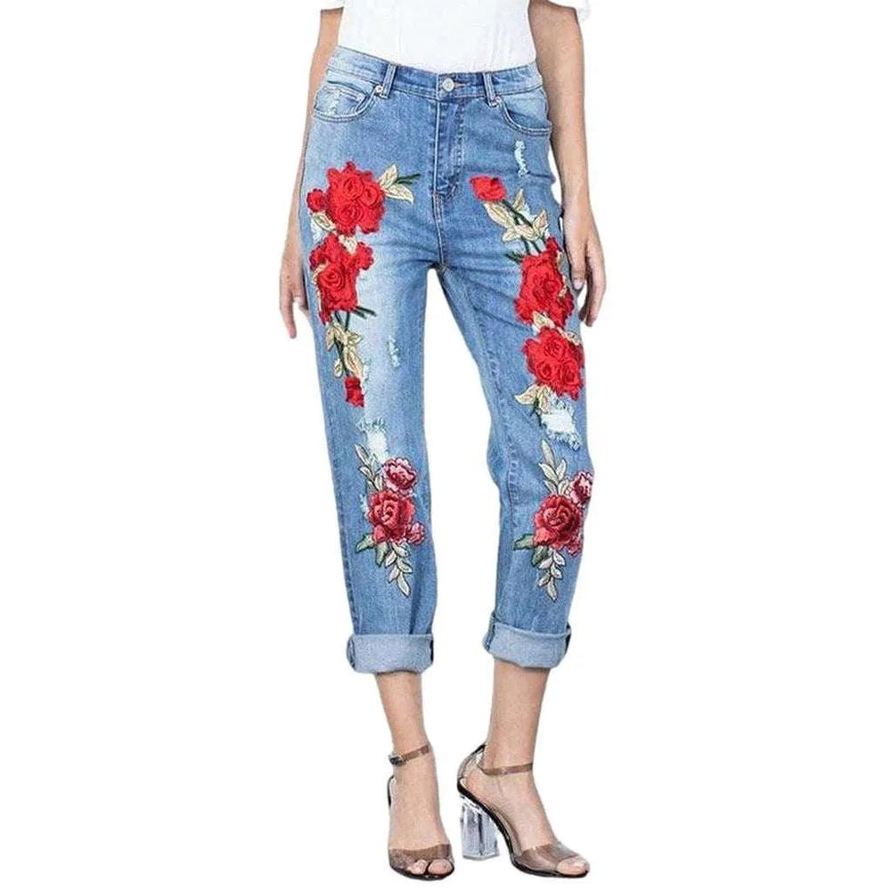 Embroidered loose jeans for women
